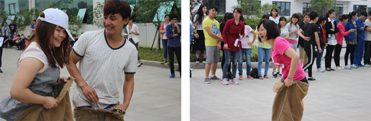 On our staff on a good pre-arranged venue, lower body set into sacks, whistle the first team quickly "jump" out of the starting point, "jump" to the second team around and put a cap to wear to Relay The second team head, the second team is also flying into the sky, and so on, fully reflects the strength of the team, not by individuals but as a group!